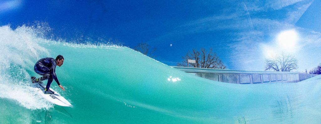 In one-hour sessions, advanced and intermediate surfers will get to go left and right on waves that have barrel, turn and air sections. Beginners will surf 2′ whitewater rollers.