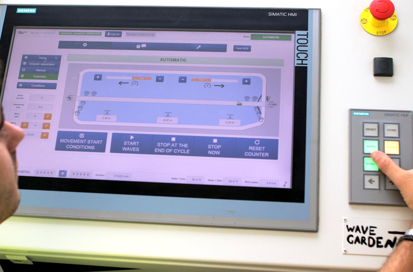The system continuously monitors hydraulic pressure, currents, wind and other variables that help the operator create great waves effectively and safely. The on-site system can also be remotely accessed by the Wavegarden engineers for operating and diagnosing the machinery.